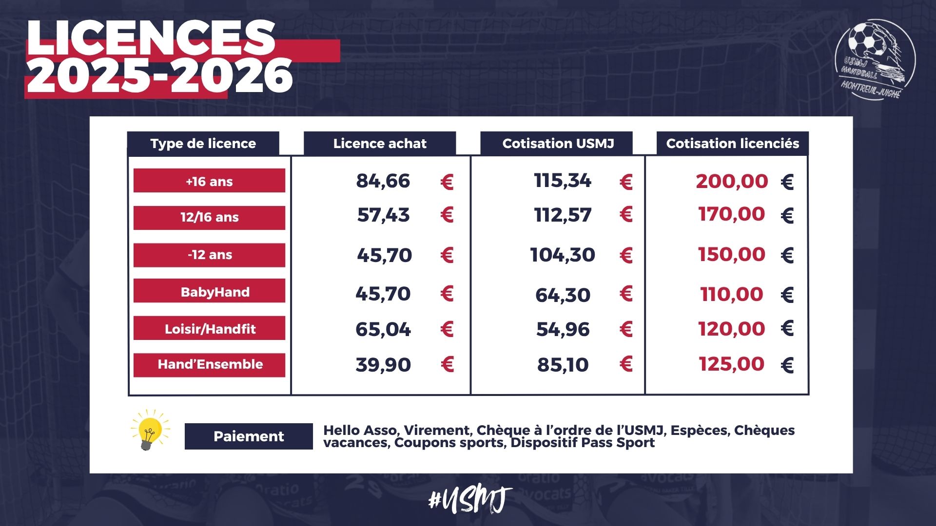Contact licence : Mathilde Carrat 06-72-81-83-56 ou montreuil.juigne.handball@
